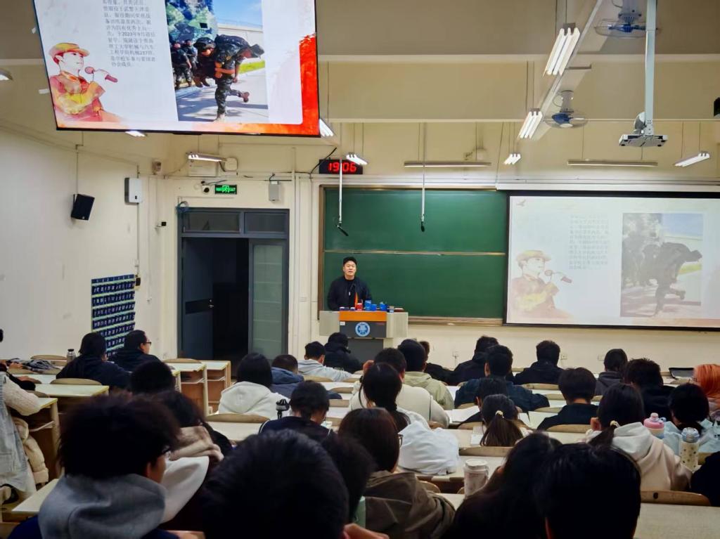 在随后的互动环节,同学们踊跃提问,气氛热烈。“1月报名和6月报名有何区别?”“部队里有哪些可以发挥我们工科生特长的岗位?”面对同学们的疑惑,辅导员老师和退伍复学同学均给予了耐心解答。