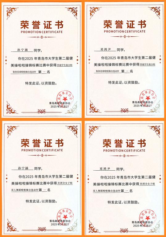 近日,青岛理工大学机械与汽车工程学院邓鸿尹、孙宁涵两位同学及所在团队捷报频传,先后在青岛市第二届健美操啦啦操锦标赛与2025年全国啦啦操联赛(青岛站)中表现突出,凭借扎实的技术功底与出色的团队协作,斩获多项荣誉,为校争光。