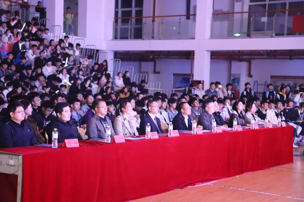 科技赋能,展现学科硬实力。沧溟机器人战队的现场表演以精准的机械动作和智能交互系统惊艳全场,充分展示了学院在智能制造领域的科研实力。学院党委书记李忠晓在致辞中强调:“我们要培养既懂技术创新,又具人文情怀的新时代工程师。”在“科创先锋”的颁奖典礼环节中,获奖学生代表孙文正用“保持追问”“别怕试错”“拥抱团队”“扎根大地”四个关键词,分享了其在参与挑战杯等赛事上的成长与感悟。