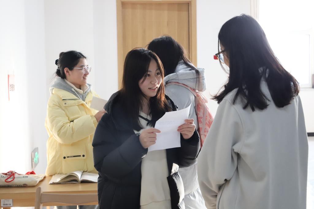 闭环接力,深度互动激发双向成长。一枚手写书签,一封加油信,一场面对面的赠与,构成一次深刻的双向教育实践。低年级学生送上鼓励的同时,也被考研学生争分夺秒的奋斗实景深深触动。“学长桌上厚厚的笔记,让我明白了什么叫积累。”材料254班赵致远说到。这场互动,将抽象的“规划”变为生动的“镜像”,有效激发了低年级学生的内生动力,形成了“激励-被激励-再激励”的良性循环。