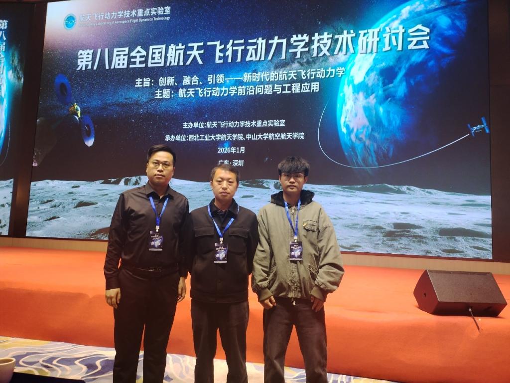 2026年1月25日至26日,第八届全国航天飞行动力学技术研讨会在广东深圳成功举办。本次会议以“创新、融合、引领——新时代的航天飞行动力学”为主旨,聚焦“航天飞行动力学前沿问题与工程应用”主题,由航天飞行动力学技术重点实验室主办。机械与汽车工程学院复杂网络与可视化研究院郭阳副院长、张伟教授及研究生岳小龙参加了此次会议。