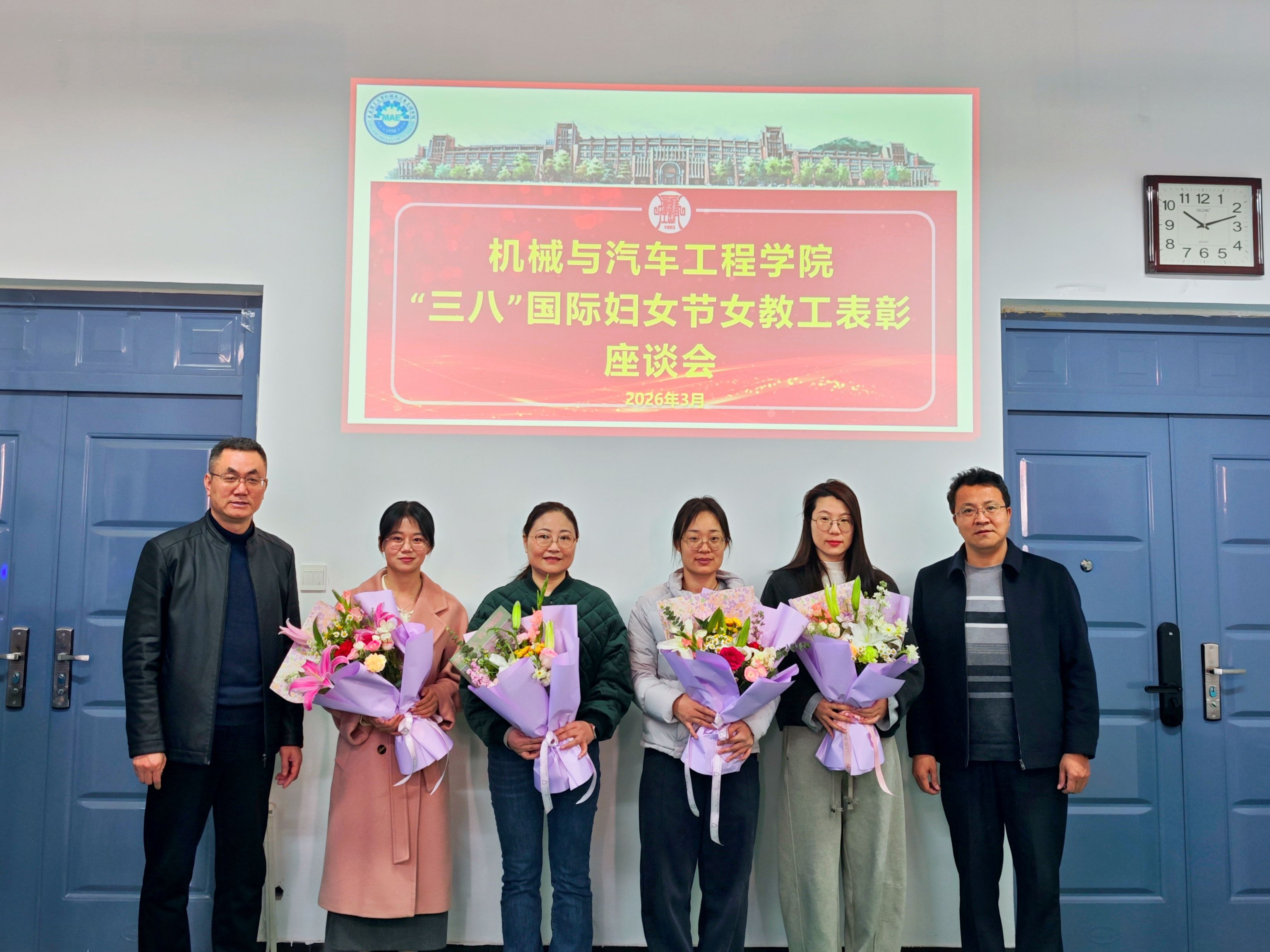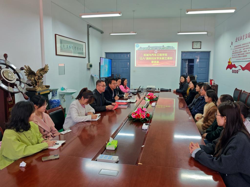 表彰优先,礼赞巾帼。3月19日上午,机械与汽车工程学院工会在汽车实验楼408会议室召开2026年“三八”国际妇女节女教工表彰座谈会,表彰2025年度在教学、科研、管理等方面成绩突出的优秀女教师,以荣誉致敬坚守,以关怀凝聚力量。学院党委书记、工会主席李忠晓代表学院向全体女教职工致以诚挚的节日问候和美好祝福,对大家过去一年立足本职岗位、深耕一线工作,全力推动学院各项事业高质量发展付出的辛勤努力表达了衷心的感谢。
