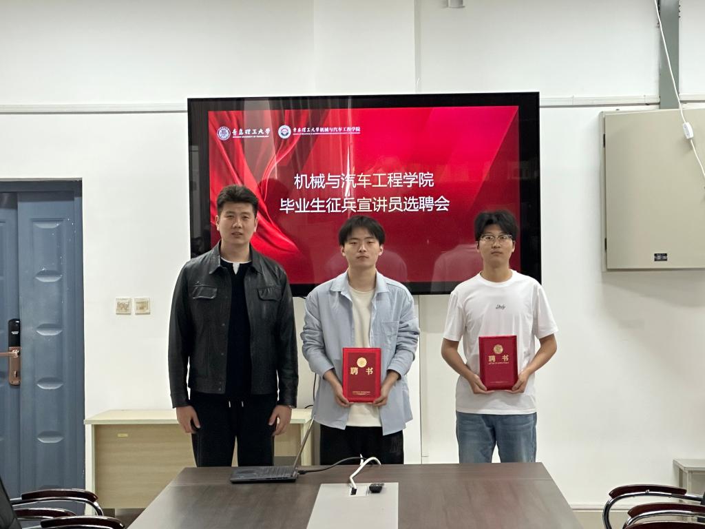 学院选聘了一批优秀的应届毕业生征兵宣讲员,并明确了宣讲员的职责,希望全体宣讲员以聘书为荣誉、以责任为动力,主动学习征兵政策,创新宣传方式,用同龄人的视角、接地气的语言,传递参军报国的正能量,切实打通征兵宣传“最后一公里”。